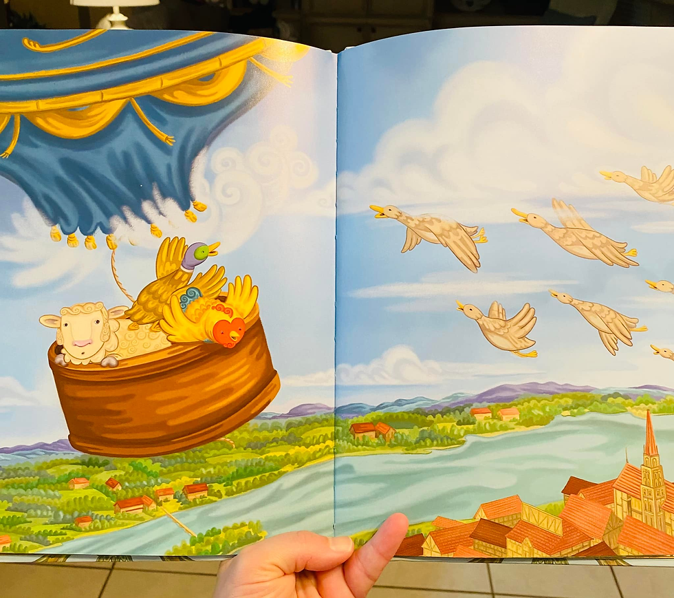We were surprised to learn that the first animals to go up in a balloon were a sheep, a rooster, and a duck!
